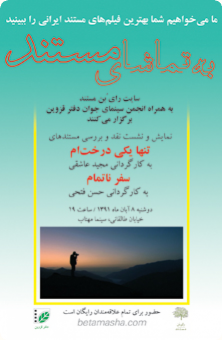 مستند تنها یکی درختام دربارهی سفری به طبیعت با یک هنرمند عکاس (حسین رحمانی) است. سفر ناتمام مستندی دربارهی زنده یاد نادر ابراهیمی، نویسنده، شاعر، فیلمنامه نویس و فیلمساز معاصر است.