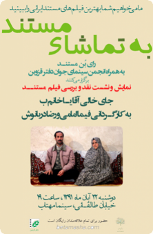 در چهارمین جلسه برنامه به تماشای مستند در شهر قزوین، فیلم مستند جای خالی آقا یا خانم ب به کارگردانی فیما امامی و رضا دریانوش به نمایش در میآیند. این مستند دربارهی یک زوج نابارور ایرانی است که تحت فشارهای مختلف اجتماعی تحت عملای وی اف (لقاح مصنوعی) قرار میگیرند؛ ولی مشکلات و فشارهای مالی ناشی از انجام این عمل و جواب منفی آزمایشگاه باعث میشود تا زندگی مشترک آنان به بنبست برسد و راهی جز طلاق برای آنها باقی نماند و...