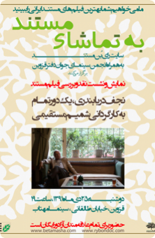 نمایش هفتگی فیلمهای مستند در قالب برنامه به تماشای مستند دوشنبه هر هفته ساعت ۱۹ در سینما مهتاب شهر قزوین برگزار میشود و ورود برای تمام علاقهمندان در این برنامه آزاد و رایگان است.