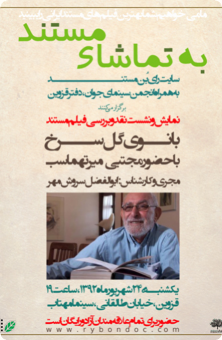 در پنجمین جلسه از دوره جدید برنامه به تماشای مستند در سال ۹۲ در شهر قزوین، فیلم مستند بانوی گل سرخ به کارگردانی مجتبی میرتهماسب به نمایش درمیآید.