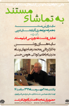 نمایش هفتگی فیلمهای مستند در قالب پروژه به تماشای مستند، یکشنبههای هفته سوم و چهارم هر ماه، ساعت ۱۶ در ارومیه، خیابان شهید امینی، جنب استانداری، سالن شیخ صفی الدین اورموی برگزار میشود. و ورود برای تمام علاقهمندان در این برنامه آزاد و رایگان است. مدیریت اجرایی این پروژه را در شهر ارومیه، امید برجسته فیلمساز جوان ارومیهای بر عهده دارد.