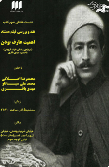برپایه این گزارش، در اولین جلسه نمایش و تحلیل فیلم که از ساعت ۱۶ عصر پنجم آذرماه ۱۳۹۲، در مرکز فرهنگی هنری شهر کتاب (واقع در خیابان شهید بهشتی، خیابان احمد قصیر [بخارست]، نبش کوچه سوم) برگزار میشود، مستند اهمیت عارف بودن ساخته مهدی باقری به نمایش درآمده و سپس با حضور کارگردان، محمدرضا اصلانی (پژوهشگر و مستندساز) و محمدعلی سپانلو (شاعر، نویسنده و مترجم) مورد بحث و بررسی قرار خواهد گرفت. گفتنی است: اهمیت عارف بودن مستند پرترهای درباره «عارف قزوینی» شاعر و تصنیف سرای مشهور کشور است.