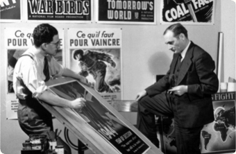 عکس: جان گریرسون (سمت راست) در روزهای اولیه ی پایه گذاری هیات ملی فیلم کانادا